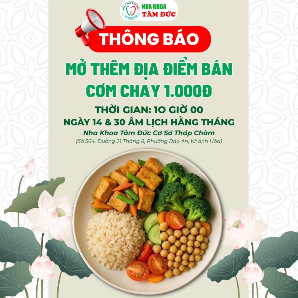 📢 Thông báo mở thêm địa điểm bán cơm chay 1.000đ Với tinh thần tương thân tương ái, cũng như chia sẻ chút tấm lòng thiện tâm đến với mọi người. Nhằm phục vụ mọi người tốt hơn và thuận tiện hơn trong việc ghé mua, Nha Khoa Tâm Đức chính thức mở thêm […]